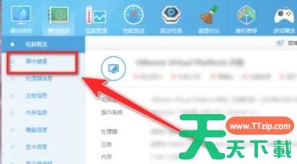 在“硬件检测”界面中,找到左侧的目录或选项列表。点击左侧的“硬件健康”选项,进入“硬件健康”界面。