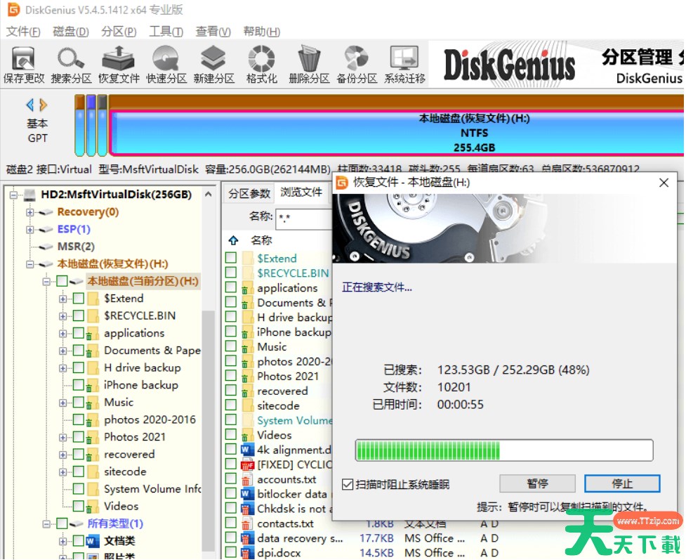 搜索丢失的文件通常会需要一些时间,所需时间主要取决于磁盘大小、文件数量以及磁盘本身的读写速度。