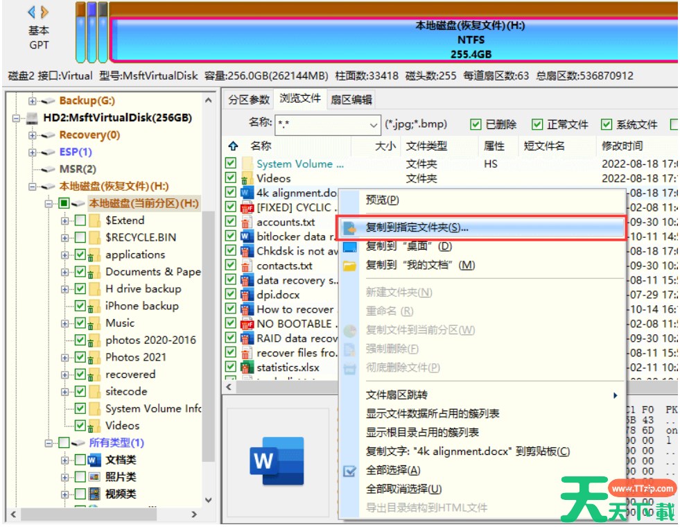 第三步、预览文件,提前了解文件的可恢复性。