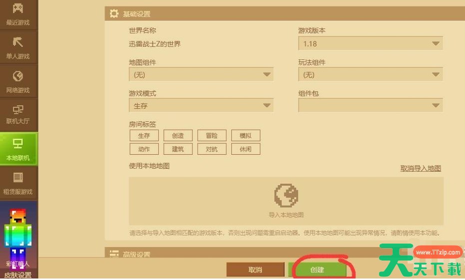 2、然后需要配置一些房间设置,如游戏模式(生存、创造、冒险等)、难度、是否允许作弊等,根据你的喜好和玩家需求进行设置,设置好了点击创建。