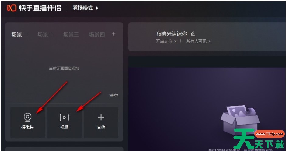 1、第一步,我们先点击打开快手直播伴侣,然后在页面中先设置好直播画面
