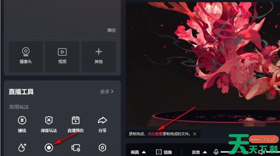 3、第三步,开始直播之后,我们在左侧的直播工具中找到“录制”工具,点击使用该工具