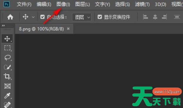 第二步:然后在Photoshop主工作区域点击图像(如图所示)。