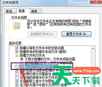 6、找到并取消勾选“因此已知文件类型的扩展名”