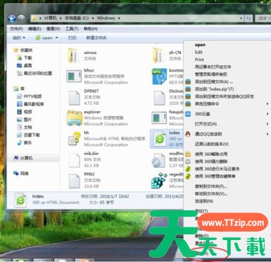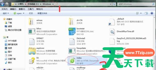 1、打开win7旗舰版系统C盘下面的Windows文件夹,找到一个名叫index的网页图标。(注:只要找到叫index的就行,就它一个。有些电脑可能显示index.htm)