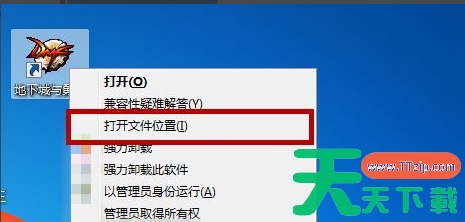1、鼠标右键点击电脑桌面的dnf游戏图标,在弹出来的选项卡中点击“打开文件位置”。