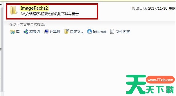 3、在右上方的搜索框中输入“imagepacks2“,这个就是dnf缓存的文件夹。