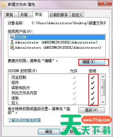 四、在这里可以看到许多权限被拒绝了,这时点击“编辑”。