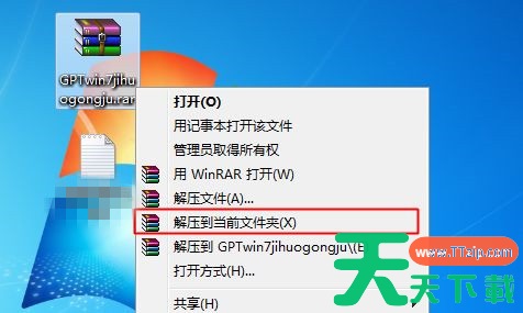1、首先下载gpt Win7激活工具chew-wga,右键选择解压到指定目录;