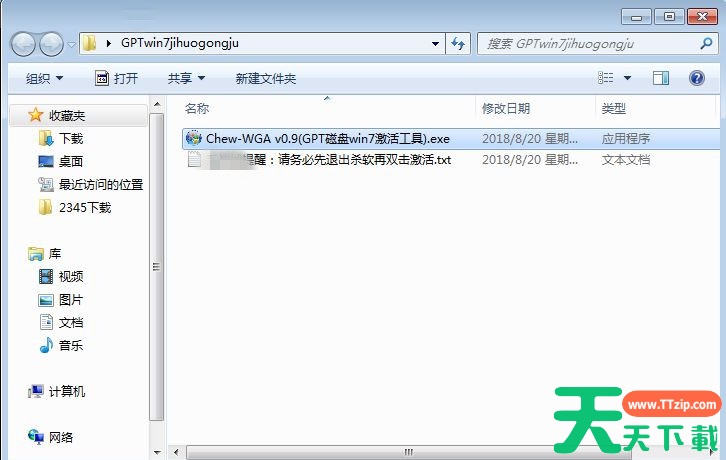 2、GPT Win7激活工具是chew-wga,双击打开即可;