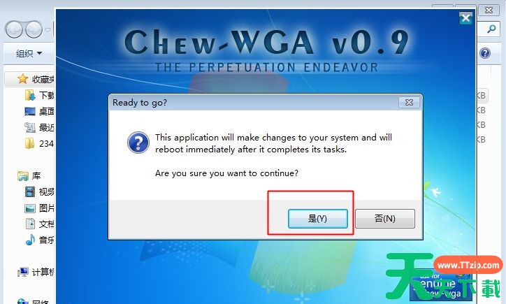 4、弹出这个提示框,提示工具会修改你的系统,激活成功会立即重启,点击是;