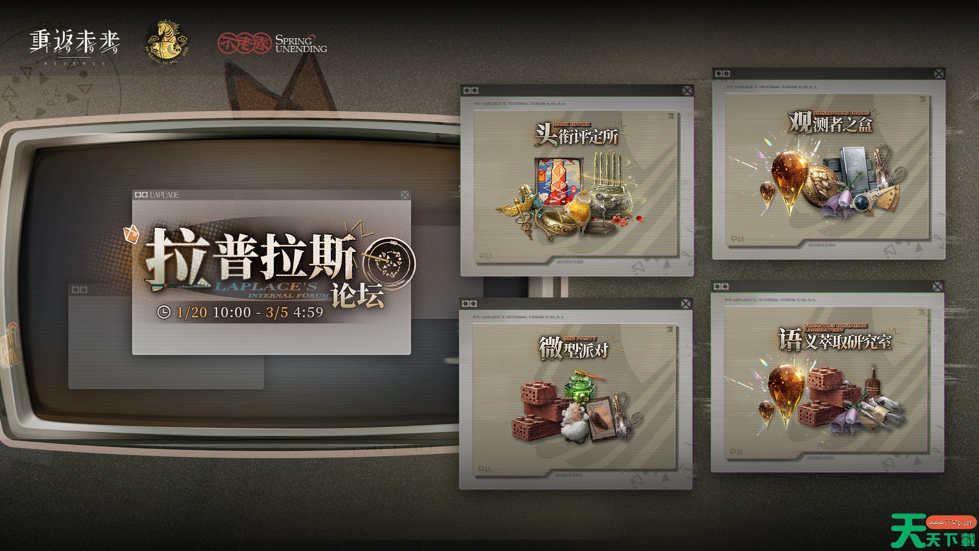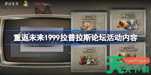 以上就是重返未来1999拉普拉斯论坛活动内容一览的全部内容了,希望玩家可以顺利的知道有哪些活动,更多精彩内容请关注天天下载(ttzip.com)。