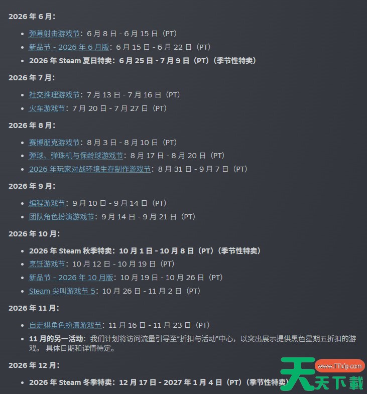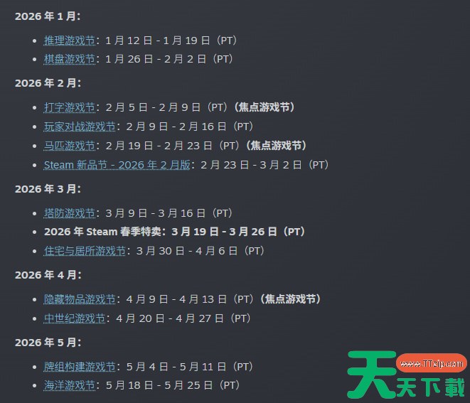 以上就是天天下载TTzip为大家带来的steam2026游戏节时间表内容解读了,大家都了解了吗?还想要了解更多的内容那就请继续关注天天下载(ttzip.com)吧。