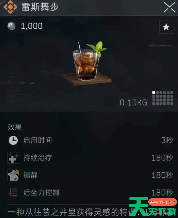 2.雷斯舞步太贵需要10w哈夫币,普通玩家不建议饮用,可以买一瓶收藏。