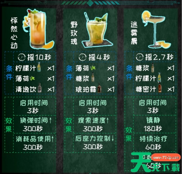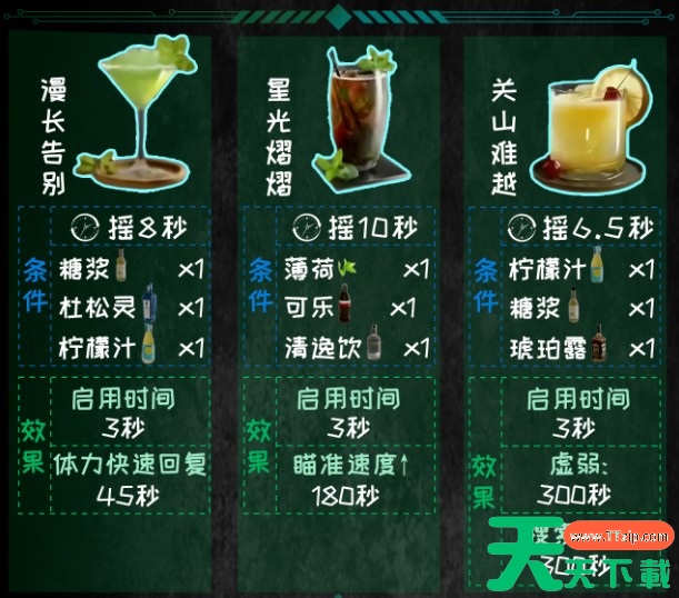 2.每次调整出白,金,红品质都是随机的,与摇一摇时间关系不大,但是尽量每个饮品都摇到8秒以上。