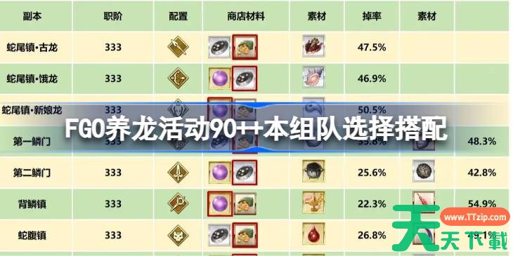 以上就是FGO养龙活动90++本组队选择搭配的全部内容了,希望玩家可以顺利的知道怎么组队搭配,更多精彩内容请关注天天下载(ttzip.com)。