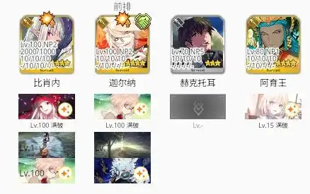 枪阶冠位战(6加成,双树满):赫克托耳13后换阿育王全技能,比肖内全技能,迦尔纳23,决战服1,阿育王+迦尔纳+比肖内宝具。