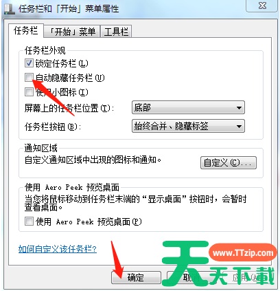 在属性面板中,选择上方任务栏菜单项,在任务栏外观中,取消勾选自动隐藏任务栏。