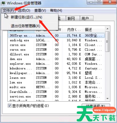 1、使用ctrl+alt+del打开任务管理器,然后点击左上角的文件选项,选择新建任务。