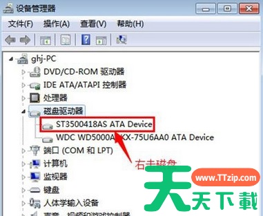 接着打开计算机管理界面后,找到设备管理器并单击打开,然后展开其中的磁盘驱动器,并在下面找到硬盘的选项。