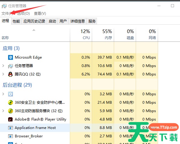 2、首先我们在任务管理器的页面上找到文件,打开文件,运行新任务,这时候就会出现一个搜索栏,输入一个你知道的浏览器的网址打开即可。