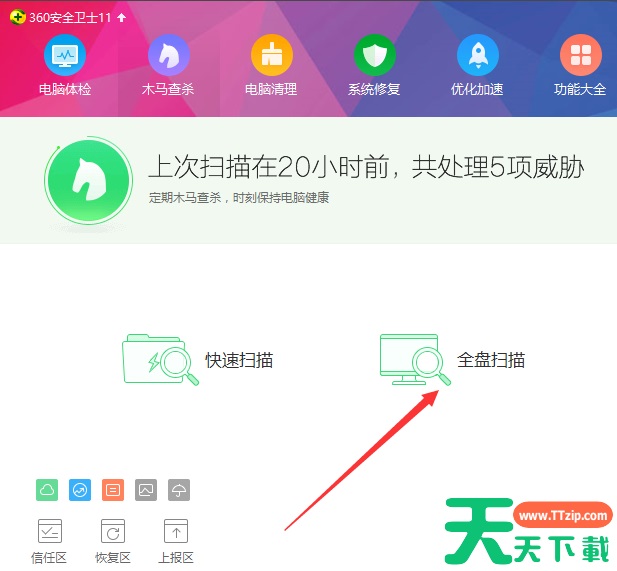 3、打开杀毒软件进行全盘扫描,一旦扫描出木马和病毒,扫面完毕后一键修复即可。你就会发现你的电脑闪屏的问题解决了。