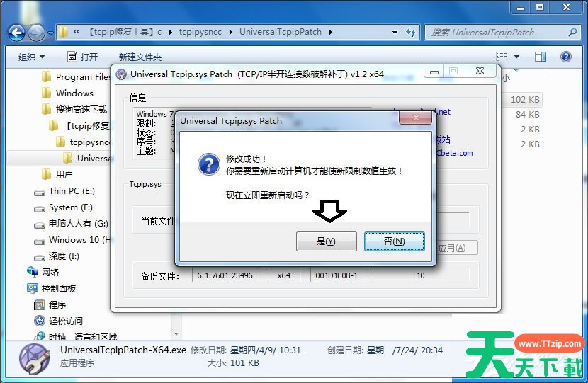 9、又弹出修复tcpip.sys文件的提示→是;
