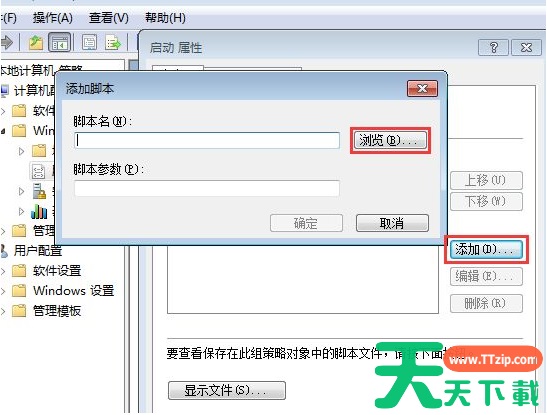 3、在弹出的启动属性菜单中右侧点击添加,在弹出的对话框中点击浏览。