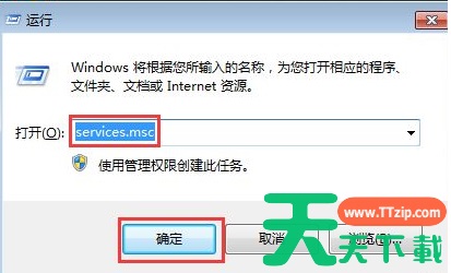 5、返回电脑桌面再次使用快捷win键+r唤出运行,输入services.msc,点击确定。