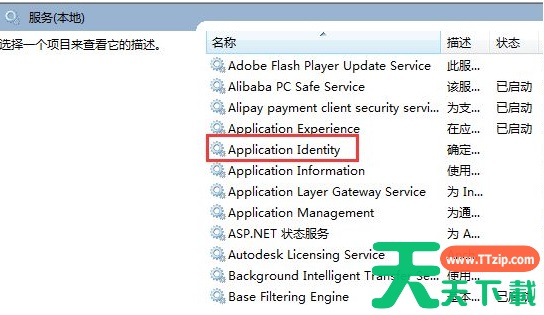 6、在服务窗口的右侧找到Application Identity并双击打开。