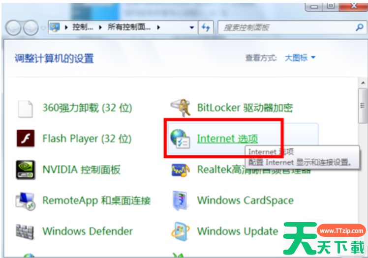 1、首先要在电脑上打开“控制面板”,找到“Internet选项”,并点击。