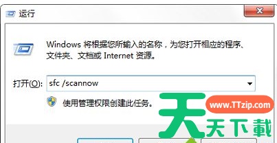 2、在运行输入框中输入命令sfc /scannow,点击回车;