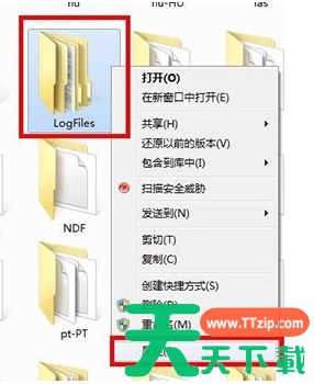 在文件夹列表中找到LogFiles文件夹,然后右键点击,选择属性。