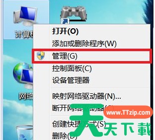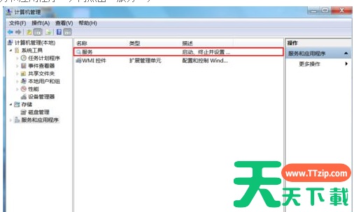 返回桌面,右键点击计算机选择管理,然后在管理的界面中,我们在左侧的菜单中找到服务这一项并单击,