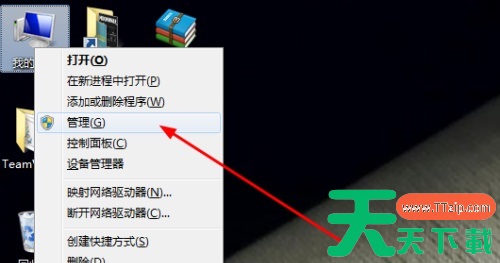 4、右键计算机/我的电脑,打开“管理”。
