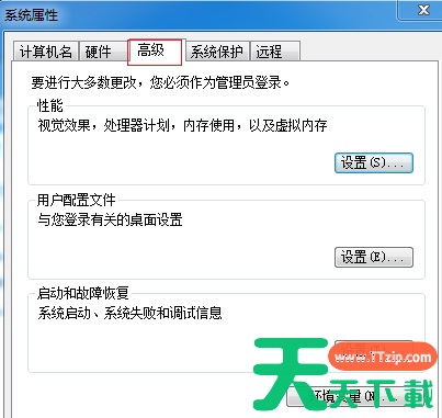 3、进入了系统属性,在【系统属性】中看到上面【高级】字样,点击【高级】,看到下面有个【性能】字样,点击性能下面的【设置】。