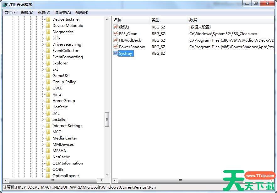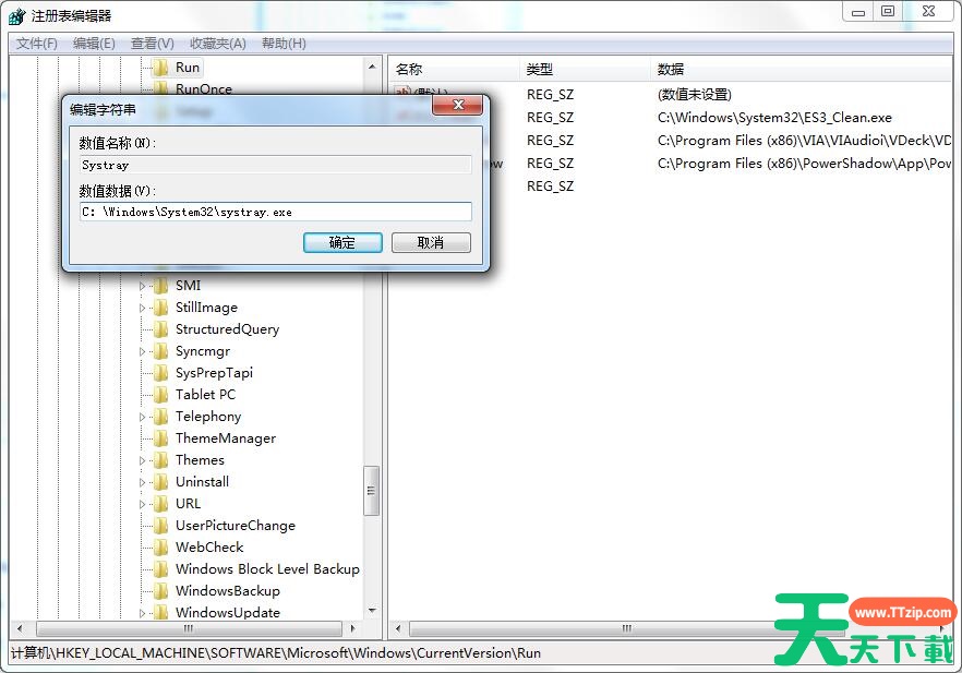 4、双击打开“Systray”,将其数值数据修改为“C:\Windows\System32\systray.exe” 点击“确定”,重启计算机即可。