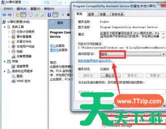 3、再找到并双击“Program Compatibility Assistant Service”,将其启动类型改为“自动”。