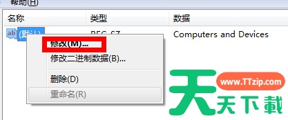 3、再把右边的“默认”的主键的键值设为“回收站”,然后退出注册表;
