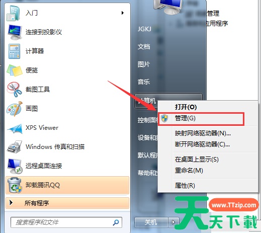 方法一:选择“我的电脑”,右击选择管理,之后会进入到“计算机管理”页面。
