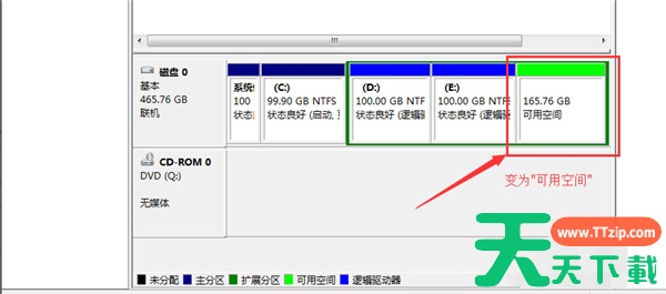 先进行格式化,使之变为“可用空间”,然后右击,选择可用空间选项中的“新建简单卷”。