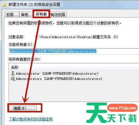 3、在“高级安全设置”窗口中单击“所有者—编辑”点击进入。