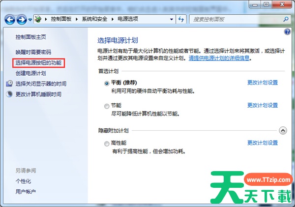 3、 接着是在界面左侧找到“选择电源按钮的功能”选项,点击它。