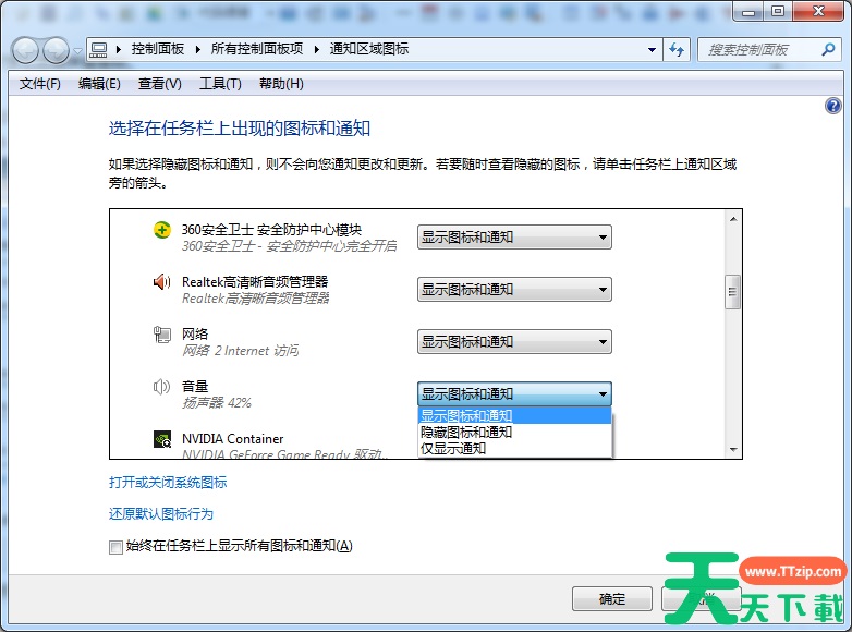 虽然现在使用Win7系统的用户变少了,但还是有一小部分的用户坚持使用Win7系统,但是最近有的用户在使用Win7系统的时候想要还原声音图标,但是不知道怎么操作,下面教给大家操作的方法,希望可以帮到大家。 Win7如何还原声音图标?具体如下: 1、单击桌面右下角任务栏中的白色小箭头,然后在弹出页面上选择“自定义”。 2、在弹出的“用户定义”页面上,将“系统音量”设置更改为“显示通知和图标”,然后单击“确定”按钮!如下图所示! 以上就是天天下载Ttzip带来的Win7如何还原声音图标的全部内容,希望可以提供帮助。 除特别注明外,本站所有文章均为 天天下载 原创,转载请注明出处来自 https://www.ttzip.com/213171.html