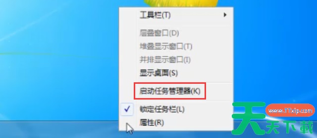 1、右键桌面底部任务栏,选择启动任务管理器。