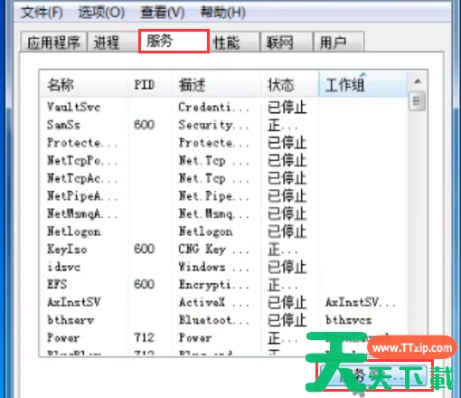 2、先点击任务管理器上方的“服务”,再在该页面右下点击“服务”。
