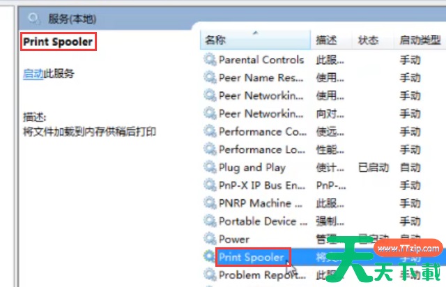 3、找到“Print Spooler”并双击打开。