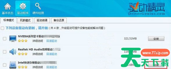 3、然后我们到了需要升级驱动的列表中,我们选择要安装的硬件驱动,点击安装,就开始在线下载新驱动了;