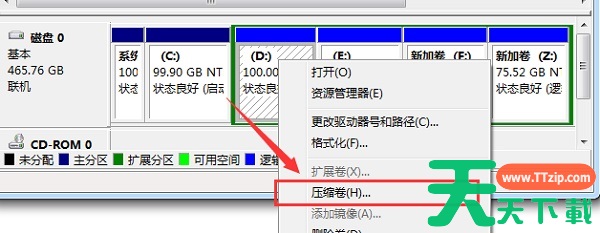 3、右键选择需要更改的磁盘,点击“压缩卷”
