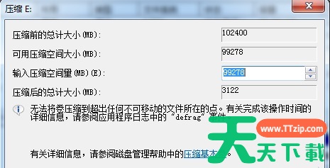 4、输入需要压缩的空间量。